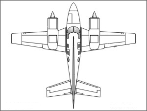 twin business airplane with retractable landing