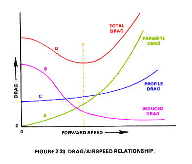 line "E", at which total drag is lowest. That airspeed is the best airspeed for